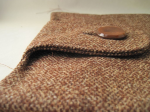 I didn’t notice all this till I’d made pocket 2. I saw how, if I moved the button placement a good inch, I could preserve the curves, and create a dimensionality. The tab wouldn’t be flattened. It, too, would have a subtle, pleasing curve of its own. The button could secure it without having it in a stranglehold. Tab and button in happy coexistence.