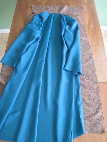 I slid the lining unit inside the coat to give you (and me) a sense of what the finished coat will look like.
