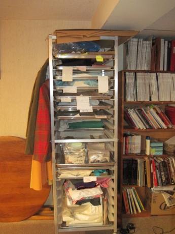 When Daniel looked at the space, you may recall, he said, “This is great! You’re paying for this space; you should use it.”  How could I say no to such enthusiasm (and common sense)? In no time flat I was thinking of what I could stow in there. Fabric? Out-of-season clothes? And what would I want to use the newly opened up space for? A decently lit photography zone?