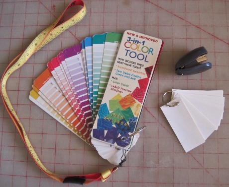 I pulled out the green and blue tweed swatch of my jacket, and found a couple of color matches, but not in the right sizes, so no purchases here.