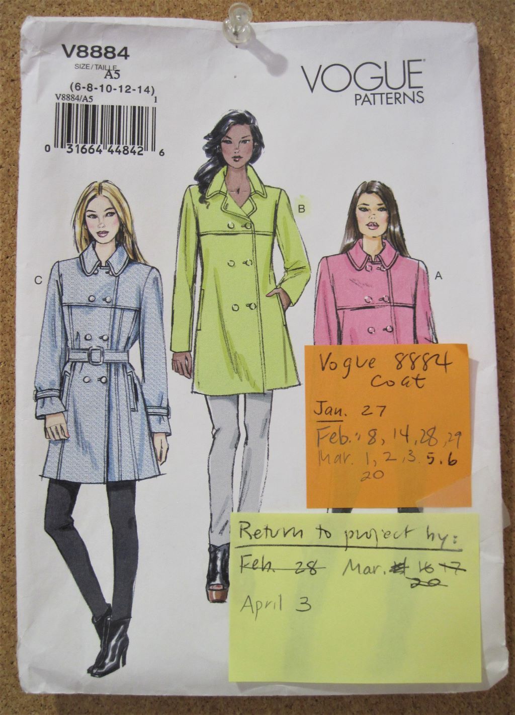 • The 14-day rule has worked two ways for me.  Most days when I update the Post-Its on the pattern envelope I think, “Okay, I have to get back to this at the latest by April 16.” But a couple of times I’ve noticed I’ve thought, “Thank goodness–I don’t have to think about this again until April 16!”