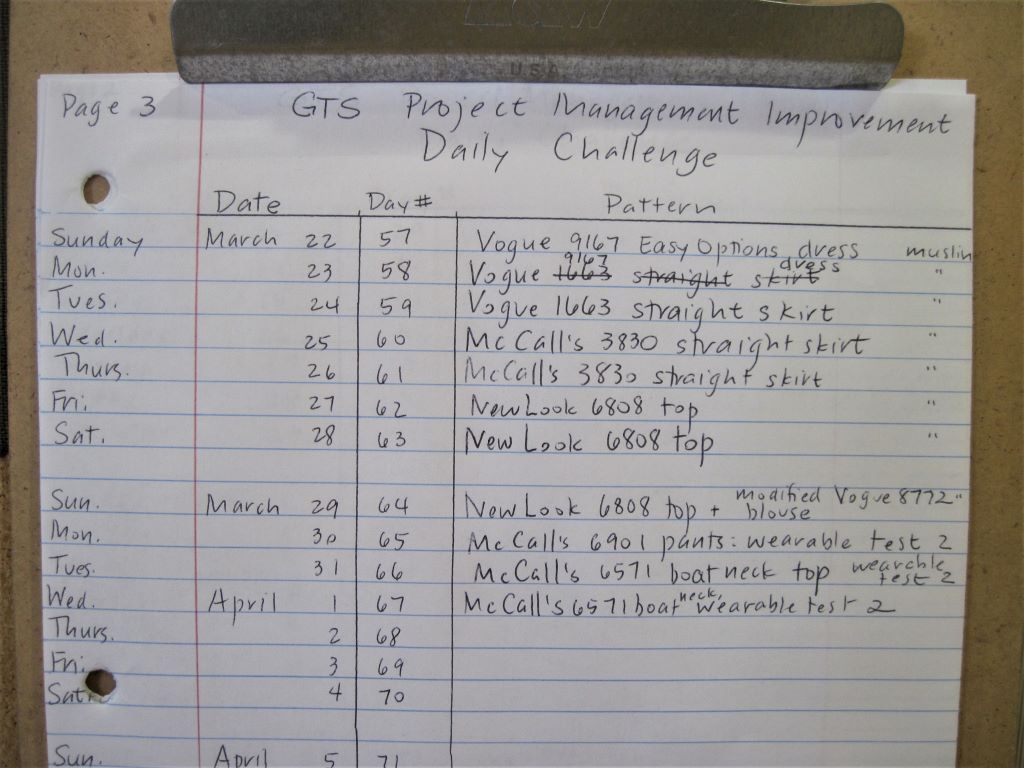 […] It’s been almost four months since a fateful day in late January when I began an experiment to dramatically improve my sewing productivity.  I gave this experiment a grandiose name: the Getting Things Sewn Project Management Improvement Daily Challenge.  You can read about it here. […]