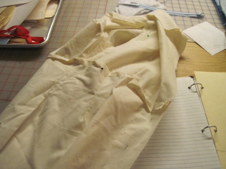 Second, I’ve been watching the videos, reading the handouts, and doing the exercises as Sarah directs. No shortcuts–just do the lessons as the teacher laid them out. It’s been a lot of fun, actually, to tug on each swatch and observe the amount of stretch, and examine it closely under a magnifying glass. I’m planning to do the mini t-shirt exercise, which shows you the fit difference between an interlock, which has moderate give, and a rib knit, which has much more give.