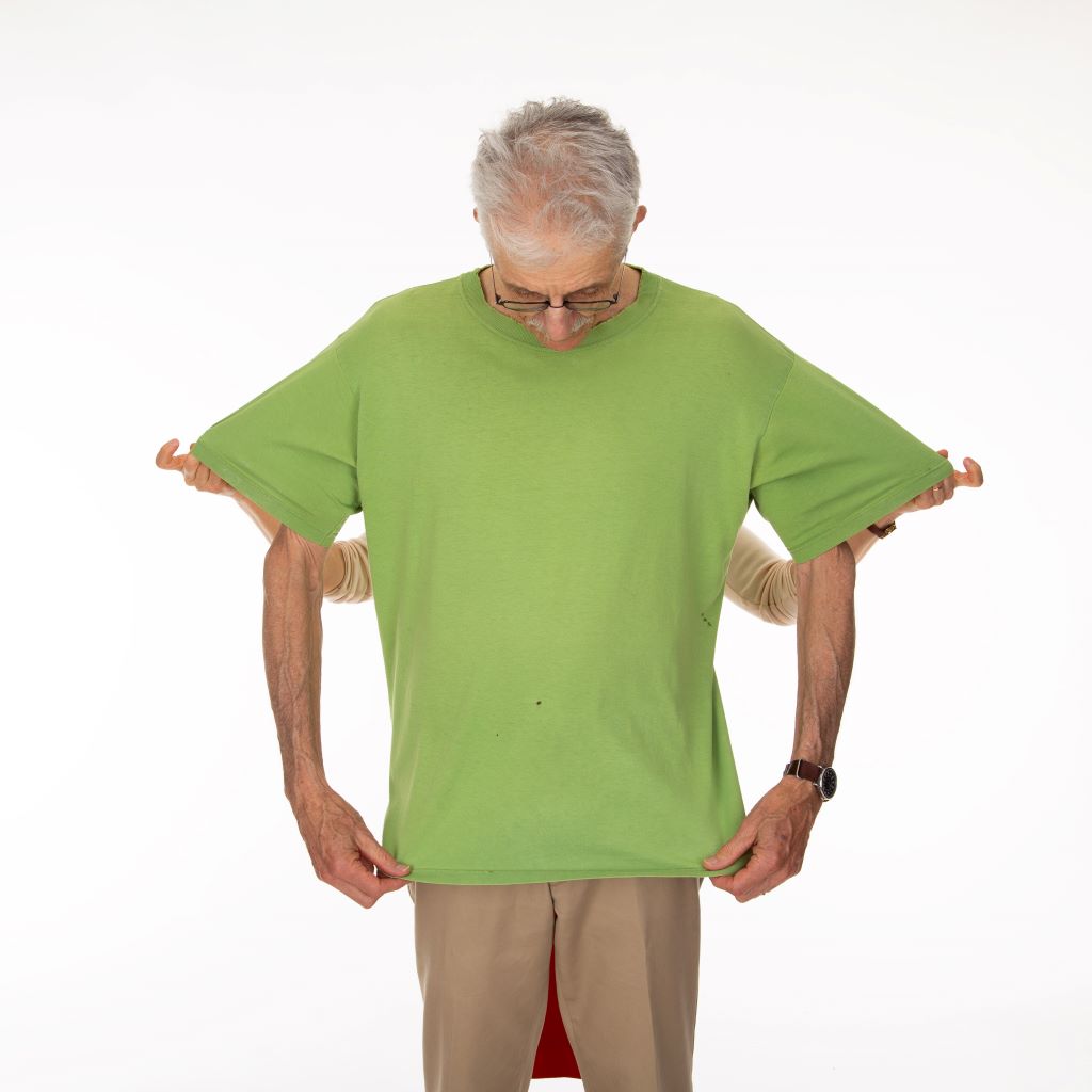 Once I suggested to Jack that I could take over the production of his T-shirt wardrobe and that he would never have to depend on ready-to-wear again there was no turning back. I had unleashed a torrent of enthusiasm neither of us had known existed. Pulling out shirt after shirt from his dresser, Jack identified Tall-sized T-shirts that assumed a barrel-chested, Paul Bunyan physique and T-shirts with ragged necklines as major annoyances. I spotted unbecoming drooping shoulder seams and voluminous sleeves.