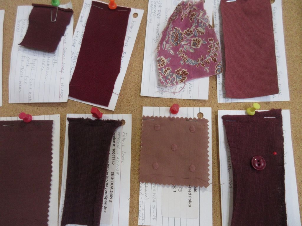 I wanted to tell you about planning tools I’ve used for getting things sewn that have stood the test of time. My favorite planning tool is my swatch boards.